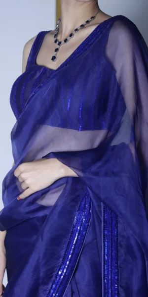 Indranee blue Silk Organza Saree