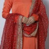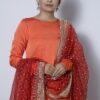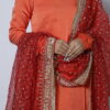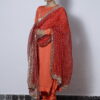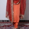 A suit that shine like gold, silk satin fabric of suit and organza with intricate hand embroidery on the dupatta, making it a truly statement outfit for special occasions.